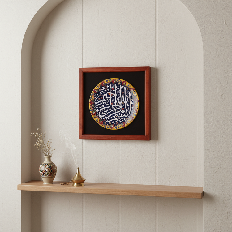 تابلوی میناکاری چوبی 35*35 مدل بسم الله الرحمن الرحیم